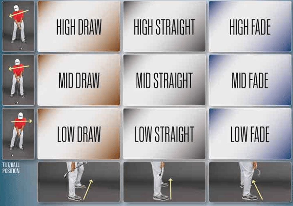 A caveat here, you need to have a pretty good standard of ball striking before changing these swing settings as you can get lost along the way! As always, check with your local club pro that you are not overdoing or misinterpreting the instructions! There are nine different shotmaking windows made up of draws, fades and straight shots, multiplied by high, medium and low ball flights. So, let's start with the easy one!